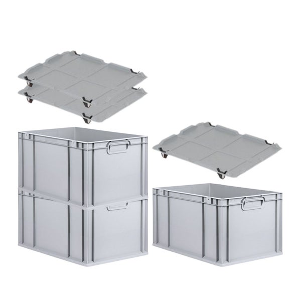 PROREGAL Spar Set 3x Eurobox Nextgen Economy Mit Auflagedeckel & 4x Schiebeschnappverschlüsse Schwarz Griffe Geschlossen HxBxT 32 x 40 x 60 cm