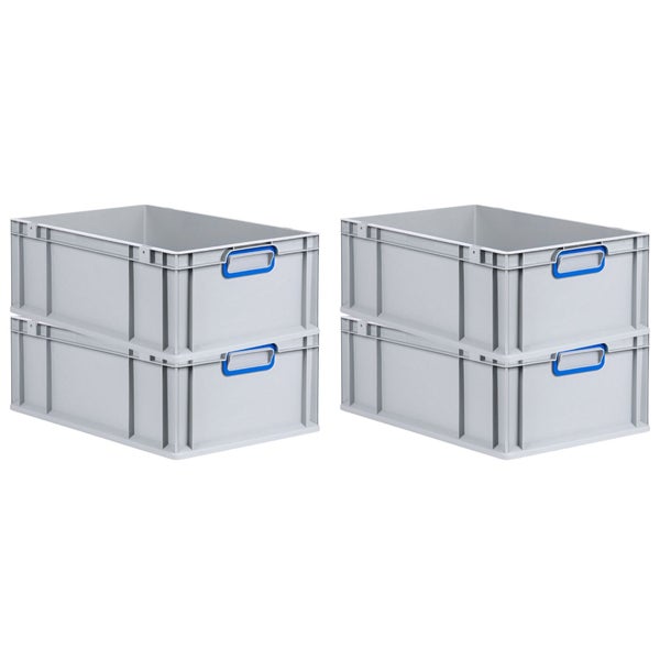 PROREGAL Spar Set 4x Eurobox Nextgen Color HxBxT 22 x 40 x 60 cm 44 Liter Griffe Blau Geschlossen Verstärkter Boden Eurobehälter Transportbox