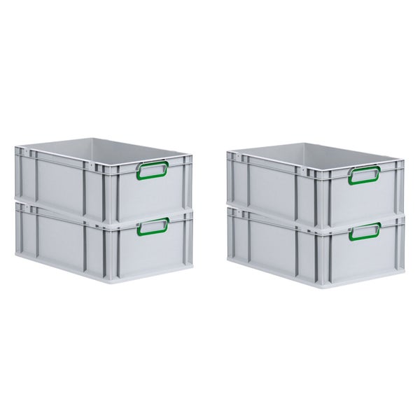PROREGAL Spar Set 4x Eurobox Nextgen Color HxBxT 22 x 40 x 60 cm 44 Liter Griffe Grün Geschlossen Verstärkter Boden Eurobehälter Transportbox
