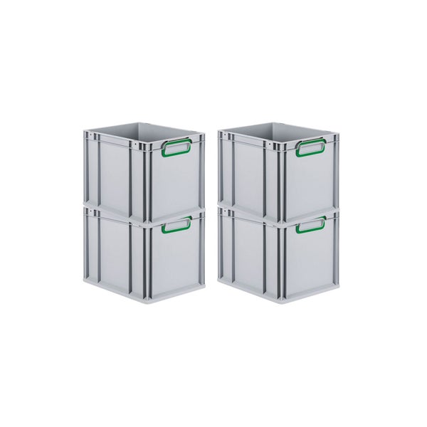 PROREGAL Spar Set 4x Eurobox Nextgen Color HxBxT 32 x 30 x 40 cm 30 Liter Griffe Grün Geschlossen Glatter Boden Eurobehälter Transportbox