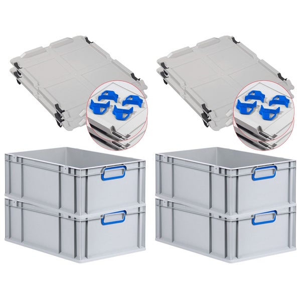 PROREGAL Spar Set 4x Eurobox Nextgen Color Mit Auflagedeckel & Schiebeschnappverschlüsse HxBxT 22 x 40 x 60 cm Griffe Blau Verstärkter Boden