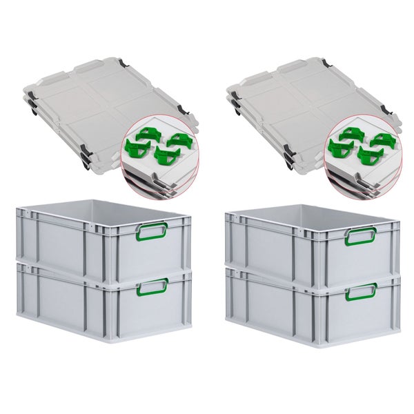 PROREGAL Spar Set 4x Eurobox Nextgen Color Mit Auflagedeckel & Schiebeschnappverschlüsse HxBxT 22 x 40 x 60 cm Griffe Grün Verstärkter Boden