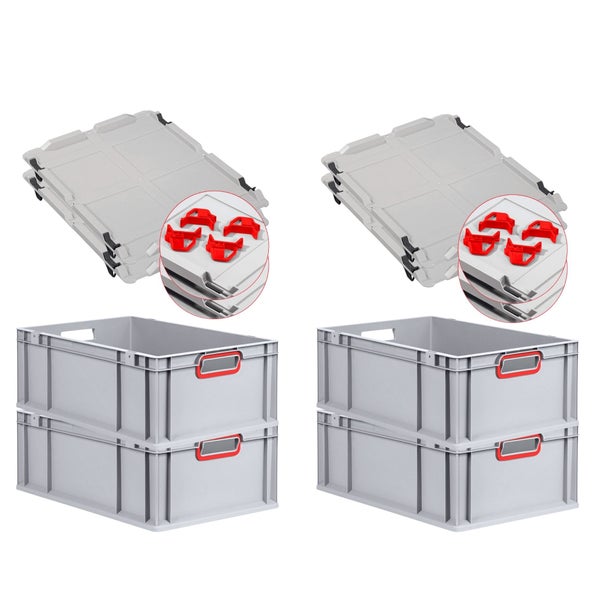 PROREGAL Spar Set 4x Eurobox Nextgen Color Mit Auflagedeckel & Schiebeschnappverschlüsse HxBxT 22 x 40 x 60 cm Griffe Rot Offen Verstärkter Boden