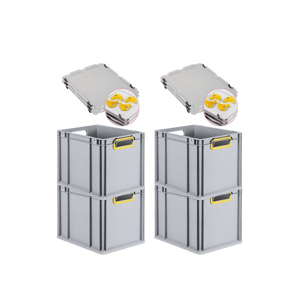 PROREGAL Spar Set 4x Eurobox Nextgen Color Mit Auflagedeckel & Schiebeschnappverschlüsse HxBxT 32 x 30 x 40 cm Griffe Gelb Offen Glatter Boden
