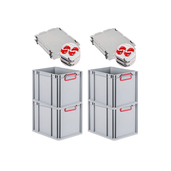 PROREGAL Spar Set 4x Eurobox Nextgen Color Mit Auflagedeckel & Schiebeschnappverschlüsse HxBxT 32 x 30 x 40 cm Griffe Rot Geschlossen Glatter Boden