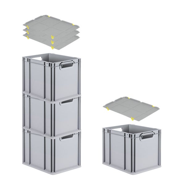 PROREGAL Spar Set 4x Eurobox Nextgen Economy Mit Auflagedeckel & 4x Schiebeschnappverschlüsse Gelb Griffe Offen HxBxT 32 x 30 x 40 cm 30 Liter
