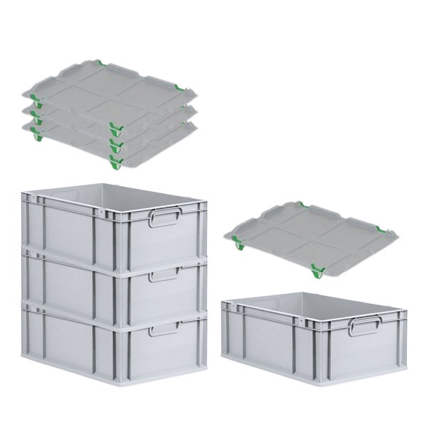 PROREGAL Spar Set 4x Eurobox Nextgen Economy Mit Auflagedeckel & 4x Schiebeschnappverschlüsse Grün Griffe Geschlossen HxBxT 22 x 40 x 60 cm 44 Liter
