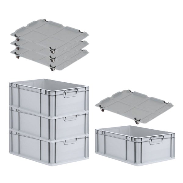 PROREGAL Spar Set 4x Eurobox Nextgen Economy Mit Auflagedeckel & 4x Schiebeschnappverschlüsse Schwarz Griffe Geschlossen HxBxT 22 x 40 x 60 cm