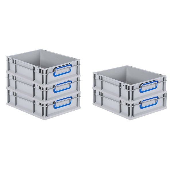 PROREGAL Spar Set 5x Eurobox Nextgen Color HxBxT 12 x 30 x 40 cm 11 Liter Griffe Blau Geschlossen Glatter Boden Eurobehälter Transportbox