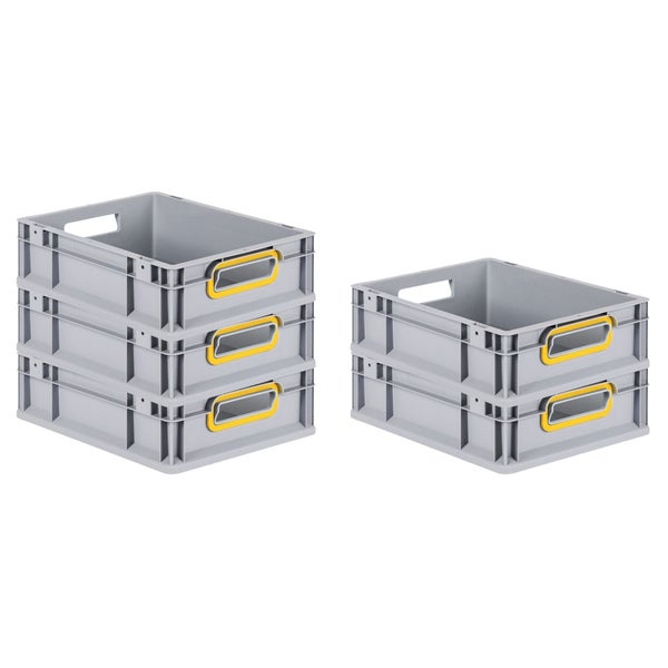 PROREGAL Spar Set 5x Eurobox Nextgen Color HxBxT 12 x 30 x 40 cm 11 Liter Griffe Gelb Offen Glatter Boden Eurobehälter Transportbox