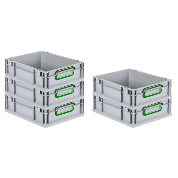 PROREGAL Spar Set 5x Eurobox Nextgen Color HxBxT 12 x 30 x 40 cm 11 Liter Griffe Grün Geschlossen Glatter Boden Eurobehälter Transportbox