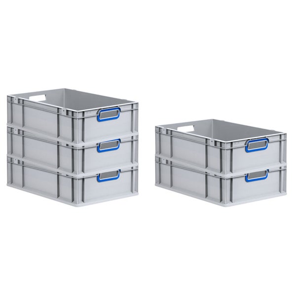 PROREGAL Spar Set 5x Eurobox Nextgen Color HxBxT 17 x 40 x 60 cm 34 Liter Griffe Blau Offen Glatter Boden Eurobehälter Transportbox