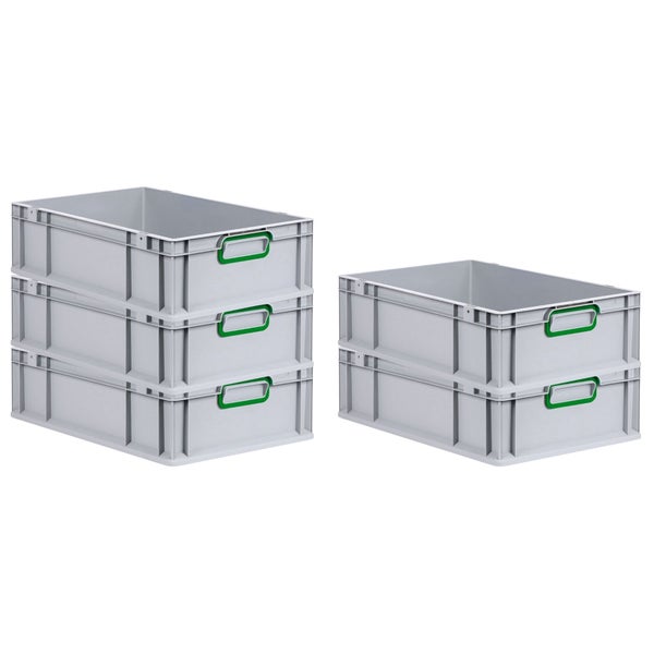 PROREGAL Spar Set 5x Eurobox Nextgen Color HxBxT 17 x 40 x 60 cm 34 Liter Griffe Grün Geschlossen Glatter Boden Eurobehälter Transportbox