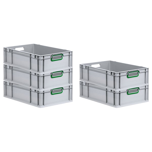PROREGAL Spar Set 5x Eurobox Nextgen Color HxBxT 17 x 40 x 60 cm 34 Liter Griffe Grün Offen Glatter Boden Eurobehälter Transportbox