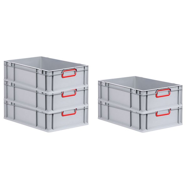 PROREGAL Spar Set 5x Eurobox Nextgen Color HxBxT 17 x 40 x 60 cm 34 Liter Griffe Rot Geschlossen Glatter Boden Eurobehälter Transportbox