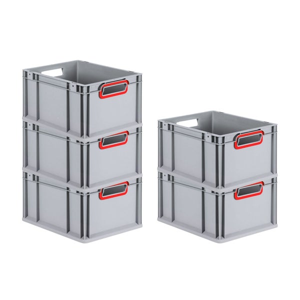 PROREGAL Spar Set 5x Eurobox Nextgen Color HxBxT 22 x 30 x 40 cm 20 Liter Griffe Rot Offen Glatter Boden Eurobehälter Transportbox