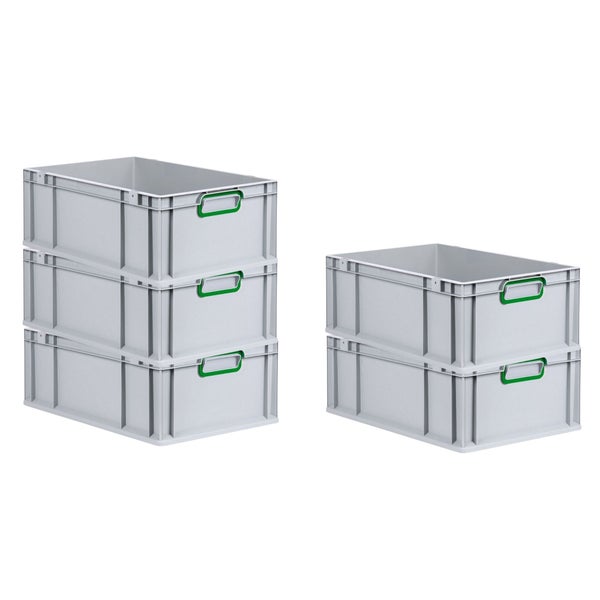PROREGAL Spar Set 5x Eurobox Nextgen Color HxBxT 22 x 40 x 60 cm 44 Liter Griffe Grün Geschlossen Verstärkter Boden Eurobehälter Transportbox