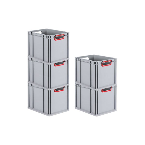 PROREGAL Spar Set 5x Eurobox Nextgen Color HxBxT 32 x 30 x 40 cm 30 Liter Griffe Rot Offen Glatter Boden Eurobehälter Transportbox