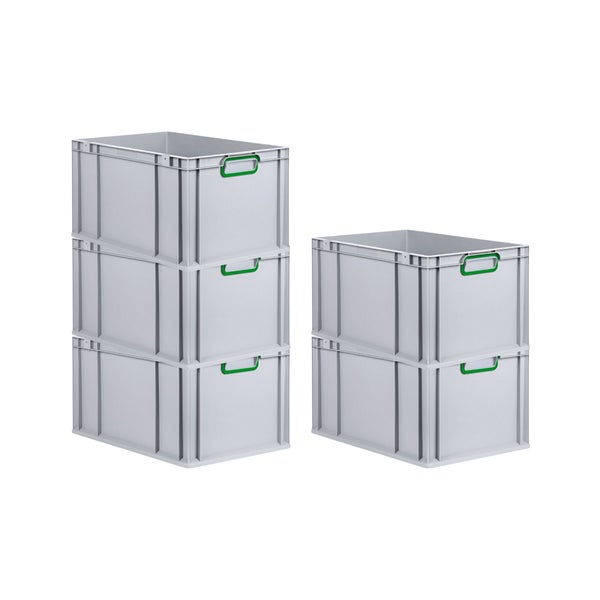 PROREGAL Spar Set 5x Eurobox Nextgen Color HxBxT 32 x 40 x 60 cm 65 Liter Griffe Grün Geschlossen Verstärkter Boden Eurobehälter Transportbox