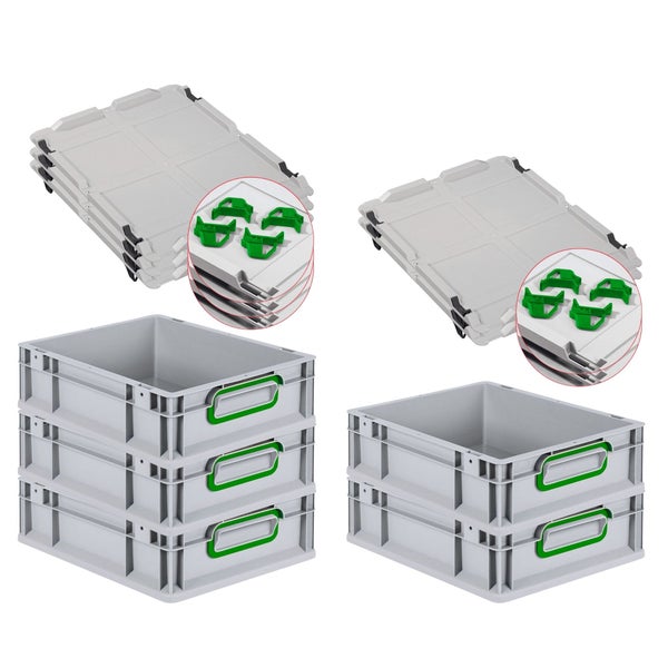 PROREGAL Spar Set 5x Eurobox Nextgen Color Mit Auflagedeckel & Schiebeschnappverschlüsse HxBxT 12 x 30 x 40 cm Griffe Grün Geschlossen Glatter Boden