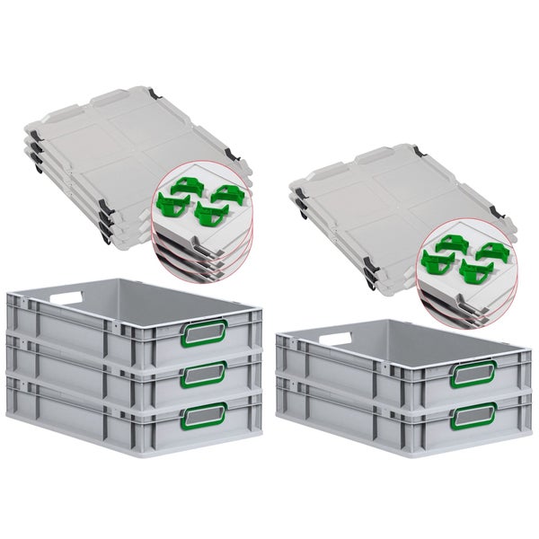 PROREGAL Spar Set 5x Eurobox Nextgen Color Mit Auflagedeckel & Schiebeschnappverschlüsse HxBxT 12 x 40 x 60 cm Griffe Grün Offen Glatter Boden