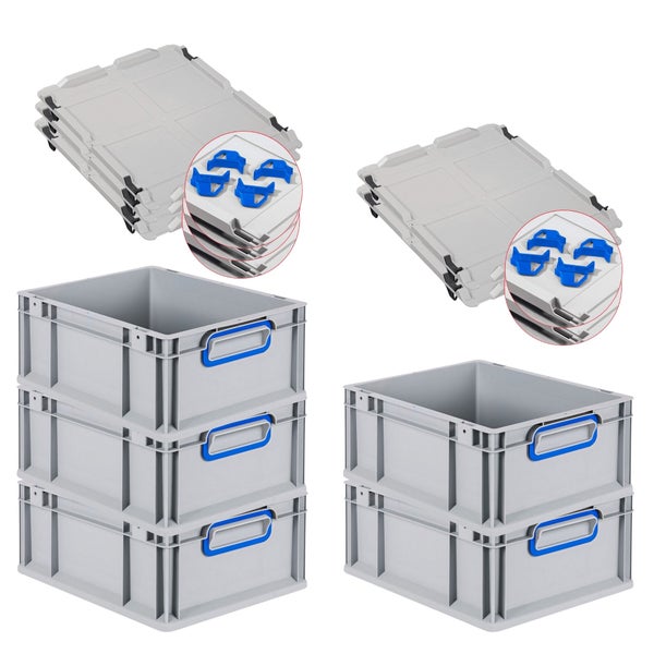 PROREGAL Spar Set 5x Eurobox Nextgen Color Mit Auflagedeckel & Schiebeschnappverschlüsse HxBxT 17 x 30 x 40 cm Griffe Blau Geschlossen Glatter Boden