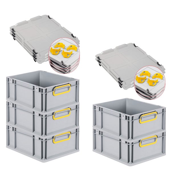 PROREGAL Spar Set 5x Eurobox Nextgen Color Mit Auflagedeckel & Schiebeschnappverschlüsse HxBxT 17 x 30 x 40 cm Griffe Gelb Geschlossen Glatter Boden
