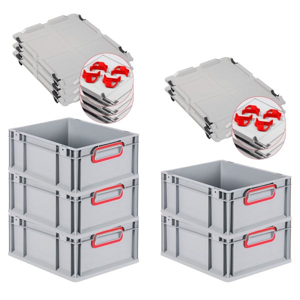 PROREGAL Spar Set 5x Eurobox Nextgen Color Mit Auflagedeckel & Schiebeschnappverschlüsse HxBxT 17 x 30 x 40 cm Griffe Rot Geschlossen Glatter Boden