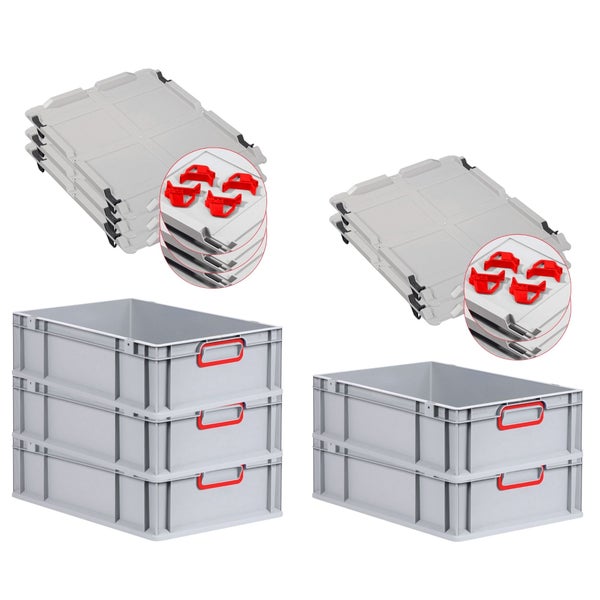 PROREGAL Spar Set 5x Eurobox Nextgen Color Mit Auflagedeckel & Schiebeschnappverschlüsse HxBxT 17 x 40 x 60 cm Griffe Rot Geschlossen Glatter Boden