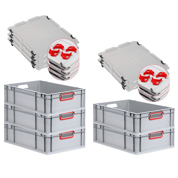 PROREGAL Spar Set 5x Eurobox Nextgen Color Mit Auflagedeckel & Schiebeschnappverschlüsse HxBxT 17 x 40 x 60 cm Griffe Rot Offen Glatter Boden