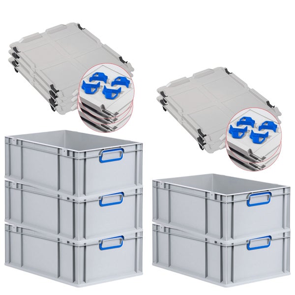 PROREGAL Spar Set 5x Eurobox Nextgen Color Mit Auflagedeckel & Schiebeschnappverschlüsse HxBxT 22 x 40 x 60 cm Griffe Blau Verstärkter Boden