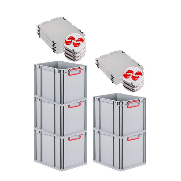 PROREGAL Spar Set 5x Eurobox Nextgen Color Mit Auflagedeckel & Schiebeschnappverschlüsse HxBxT 32 x 30 x 40 cm Griffe Rot Geschlossen Glatter Boden