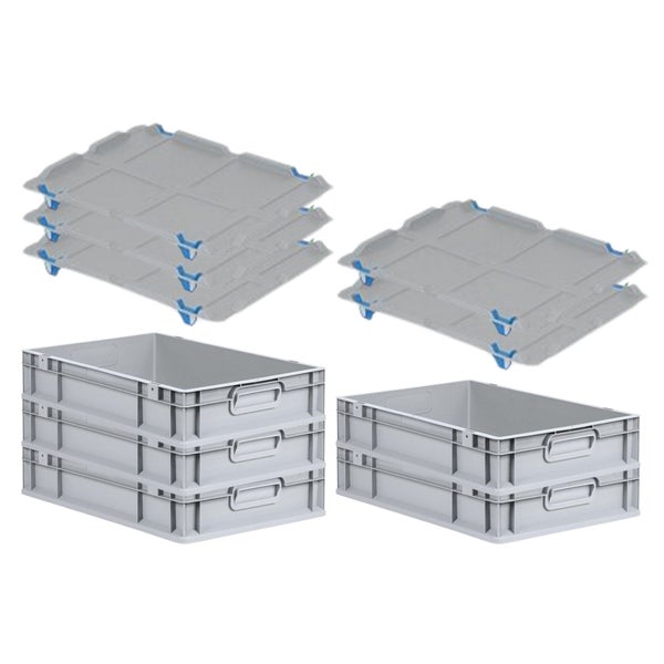 PROREGAL Spar Set 5x Eurobox Nextgen Economy Mit Auflagedeckel & 4x Schiebeschnappverschlüsse Blau Griffe Geschlossen HxBxT 12 x 40 x 60 cm 23 Liter