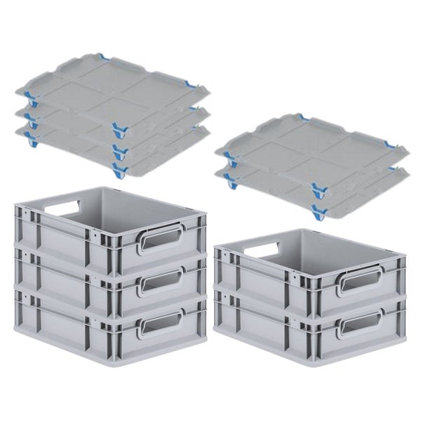 PROREGAL Spar Set 5x Eurobox Nextgen Economy Mit Auflagedeckel & 4x Schiebeschnappverschlüsse Blau Griffe Offen HxBxT 12 x 30 x 40 cm 11 Liter