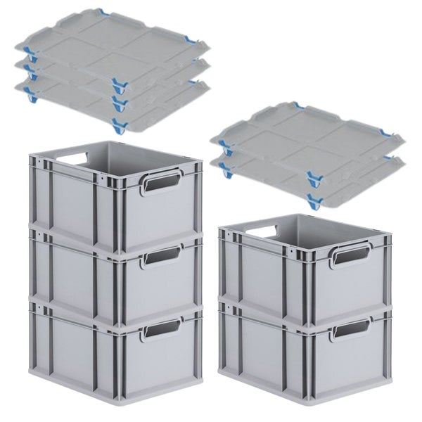 PROREGAL Spar Set 5x Eurobox Nextgen Economy Mit Auflagedeckel & 4x Schiebeschnappverschlüsse Blau Griffe Offen HxBxT 22 x 30 x 40 cm 20 Liter