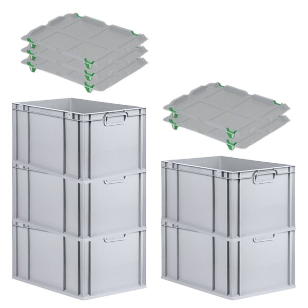 PROREGAL Spar Set 5x Eurobox Nextgen Economy Mit Auflagedeckel & 4x Schiebeschnappverschlüsse Grün Griffe Geschlossen HxBxT 32 x 40 x 60 cm 65 Liter