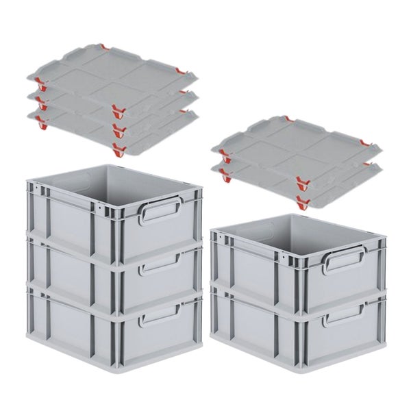 PROREGAL Spar Set 5x Eurobox Nextgen Economy Mit Auflagedeckel & 4x Schiebeschnappverschlüsse Rot Griffe Geschlossen HxBxT 17 x 30 x 40 cm 16 Liter