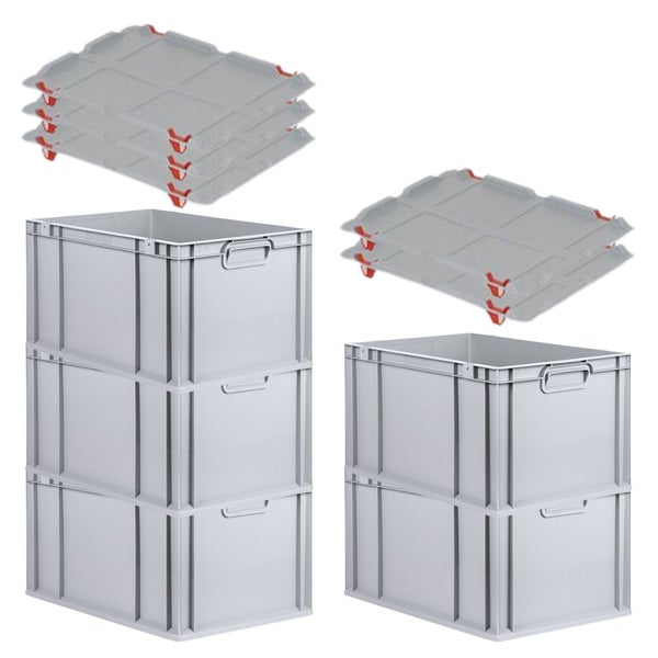 PROREGAL Spar Set 5x Eurobox Nextgen Economy Mit Auflagedeckel & 4x Schiebeschnappverschlüsse Rot Griffe Geschlossen HxBxT 32 x 40 x 60 cm 65 Liter