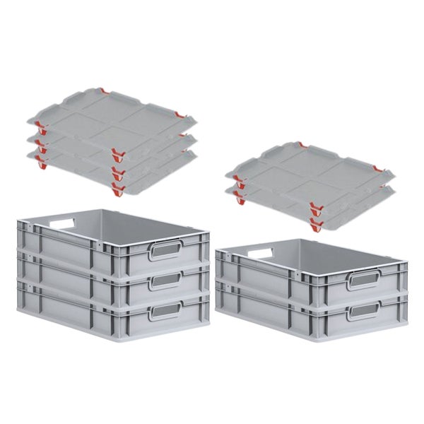 PROREGAL Spar Set 5x Eurobox Nextgen Economy Mit Auflagedeckel & 4x Schiebeschnappverschlüsse Rot Griffe Offen HxBxT 12 x 40 x 60 cm 23 Liter