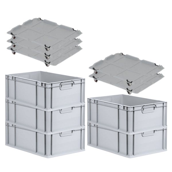PROREGAL Spar Set 5x Eurobox Nextgen Economy Mit Auflagedeckel & 4x Schiebeschnappverschlüsse Schwarz Griffe Geschlossen HxBxT 22 x 40 x 60 cm
