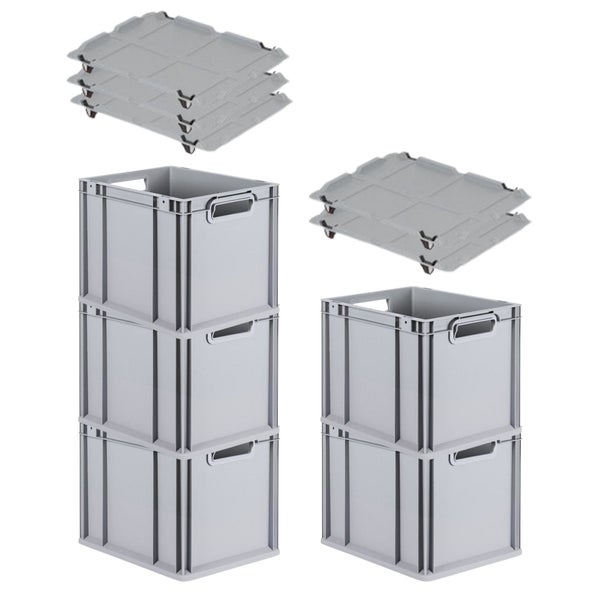 PROREGAL Spar Set 5x Eurobox Nextgen Economy Mit Auflagedeckel & 4x Schiebeschnappverschlüsse Schwarz Griffe Offen HxBxT 32 x 30 x 40 cm 30 Liter