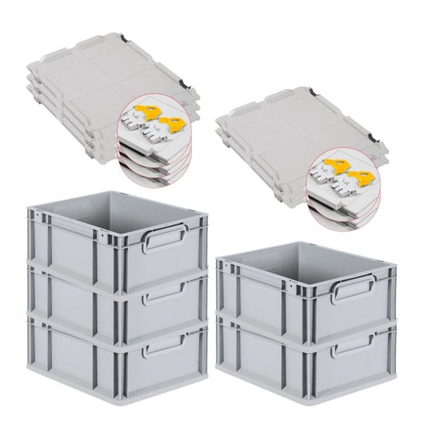 PROREGAL Spar Set 5x Eurobox Nextgen Economy Mit Scharnierdeckel & Gelben Schiebeschnappverschlüsse Griffe Geschlossen HxBxT 17 x 30 x 40 cm 16 Liter