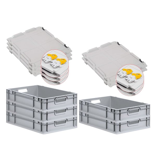 PROREGAL Spar Set 5x Eurobox Nextgen Economy Mit Scharnierdeckel & Gelben Schiebeschnappverschlüssen Griffe Offen HxBxT 12 x 40 x 60 cm 23 Liter