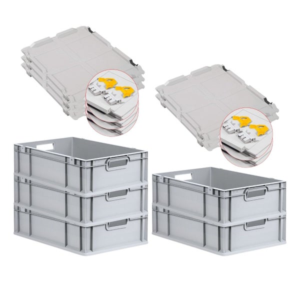 PROREGAL Spar Set 5x Eurobox Nextgen Economy Mit Scharnierdeckel & Gelben Schiebeschnappverschlüssen Griffe Offen HxBxT 17 x 40 x 60 cm 34 Liter