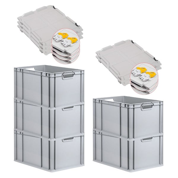 PROREGAL Spar Set 5x Eurobox Nextgen Economy Mit Scharnierdeckel & Gelben Schiebeschnappverschlüssen Griffe Offen HxBxT 32 x 40 x 60 cm 65 Liter