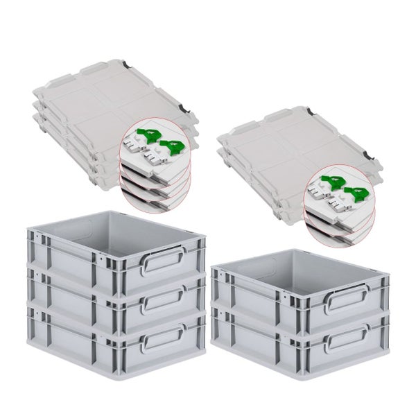 PROREGAL Spar Set 5x Eurobox Nextgen Economy Mit Scharnierdeckel & Grünen Schiebeschnappverschlüsse Griffe Geschlossen HxBxT 12 x 30 x 40 cm 11 Liter
