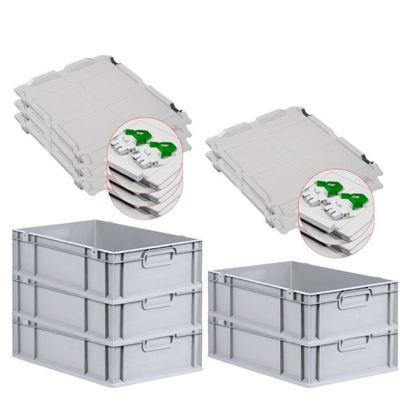 PROREGAL Spar Set 5x Eurobox Nextgen Economy Mit Scharnierdeckel & Grünen Schiebeschnappverschlüsse Griffe Geschlossen HxBxT 17 x 40 x 60 cm 34 Liter