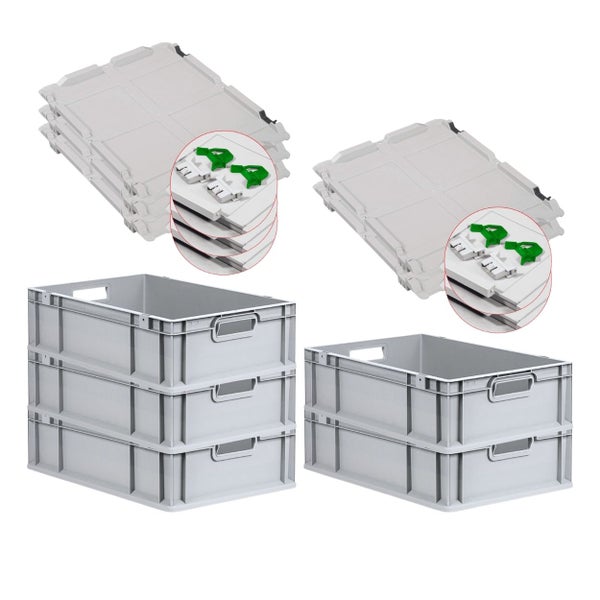 PROREGAL Spar Set 5x Eurobox Nextgen Economy Mit Scharnierdeckel & Grünen Schiebeschnappverschlüssen Griffe Offen HxBxT 17 x 40 x 60 cm 34 Liter