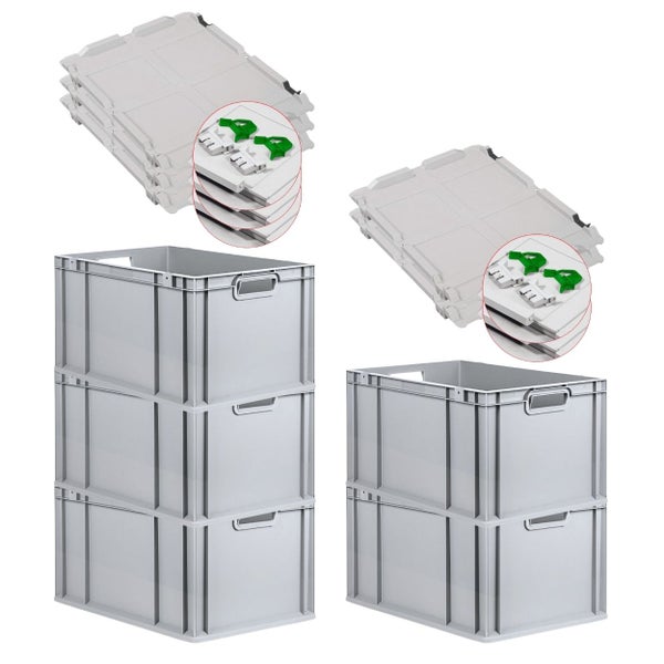 PROREGAL Spar Set 5x Eurobox Nextgen Economy Mit Scharnierdeckel & Grünen Schiebeschnappverschlüssen Griffe Offen HxBxT 32 x 40 x 60 cm 65 Liter
