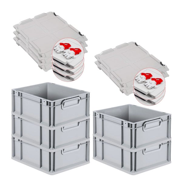 PROREGAL Spar Set 5x Eurobox Nextgen Economy Mit Scharnierdeckel & Roten Schiebeschnappverschlüssen Griffe Geschlossen HxBxT 17 x 30 x 40 cm 16 Liter